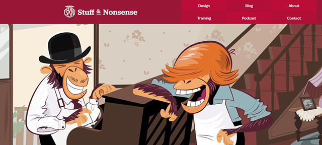 《Stuff和無(wú)意義》用卡通風(fēng)格的插圖標(biāo)題和歡快的人物建立了一個(gè)歡樂而略帶都市氣息的氛圍。他們的網(wǎng)站不僅傳達(dá)了他們的個(gè)性,而且還具有獨(dú)特的靈魂。