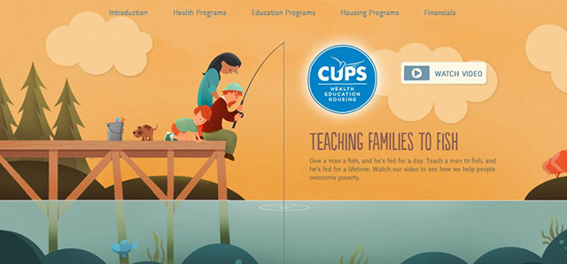 CUPS是一個(gè)慈善網(wǎng)站,利用它的設(shè)計(jì)和插圖以一種吸引人的方式傳達(dá)他們非常嚴(yán)肅的信息。插圖使頁(yè)面更有趣。它甚至讓動(dòng)畫更加有趣。所以,即使這個(gè)主題是非常嚴(yán)肅的,通過(guò)使用這個(gè)有趣而有趣的方法,我們可以在整個(gè)網(wǎng)站上看到,我們能夠讓訪客留下,繼續(xù)閱讀。