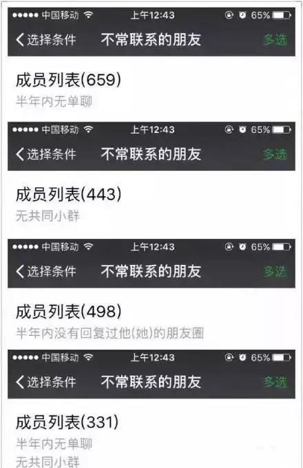 我們一定有一些不常聯(lián)系,也是好友的朋友,所以,這里篩選出來的不常聯(lián)系朋友,也有一個(gè)好處,就是看看哪些朋友不常聯(lián)系,就發(fā)個(gè)問候:好久不見啊,哥們兒!現(xiàn)在過的好嗎?