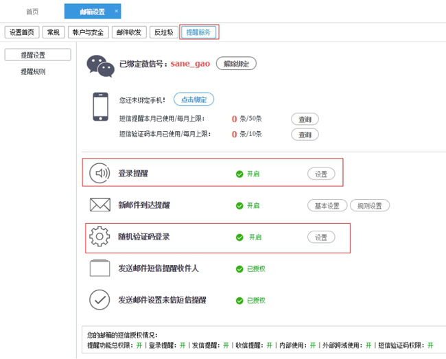 b)?郵箱用戶登入郵箱管理端,選擇“設置”-“賬戶綁定”,如下圖: