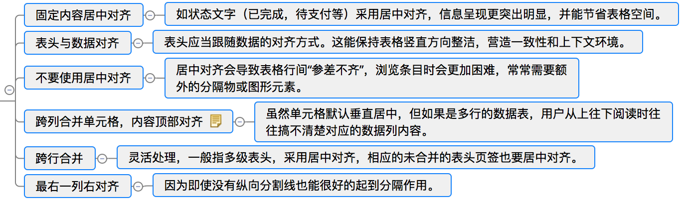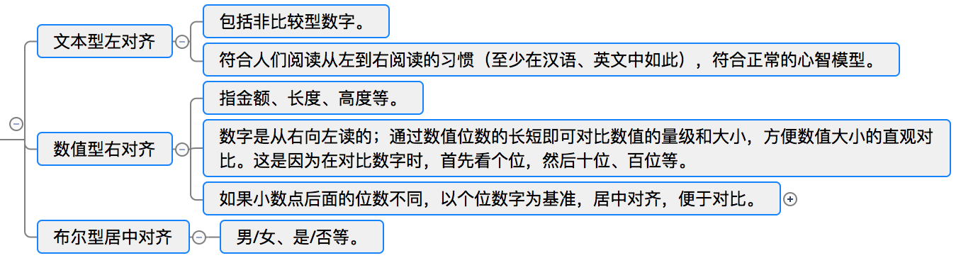 合適的對齊方式能夠提升數據的瀏覽效率。表格內信息的縱向列對齊(符合格式塔心理學中相近原則)能夠很好的形成視覺引導線。通過對齊,會讓表格更加規(guī)范易理解,給用戶視覺上的統(tǒng)一感,視線流動更順暢,讓用戶快速的捕捉到所需內容。