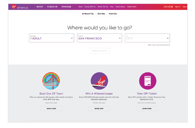 維珍美國航空在設(shè)計(jì)網(wǎng)站時就選擇了反其道而行。