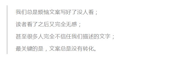 但路漫漫其修遠(yuǎn)兮,文案最深的含意不是來自于已經(jīng)說了的,而是沒說的。這一點,需要我們不停的去摸索,不停的去嘗試,它摸不到,卻能習(xí)得。