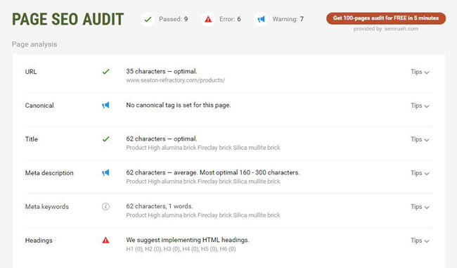 在Parameters里面,我們可以發(fā)現(xiàn)網(wǎng)站的一些最基礎(chǔ)的信息,比如在各大搜索引擎中的收錄情況,這個頁面在社交網(wǎng)絡(luò)中的熱度(有沒有被很多的分享、點贊),以及各種獲得的各種權(quán)威網(wǎng)站排名,以及semrush測得的外鏈情況: