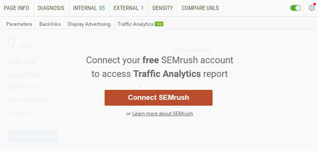 而在Traffic Analytics里面,我們可以看到semrush預(yù)估的網(wǎng)站流量情況:需要鏈接semrush賬戶。