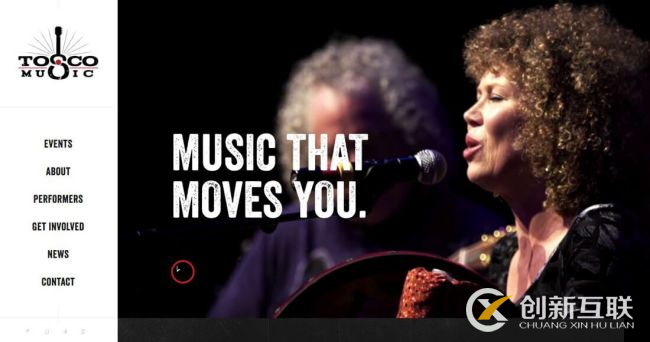 以Tosco Music 為例,他們的頁(yè)面設(shè)計(jì)就給訪客的第一印象就相當(dāng)不錯(cuò),網(wǎng)站中包含了一系列有趣的視覺(jué)設(shè)計(jì):