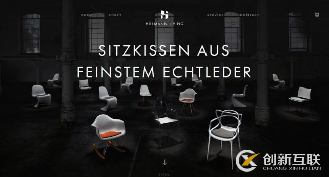 Hillman Living 的首頁(yè)采用了一張看起來(lái)略顯荒涼單調(diào)的圖片來(lái)營(yíng)造冷峻的氛圍,同時(shí)用顯眼的暖色調(diào)來(lái)點(diǎn)綴,與整體的氛圍構(gòu)成對(duì)比,緊緊抓住用戶的注意力,讓用戶注意到圖中獨(dú)特的椅子。