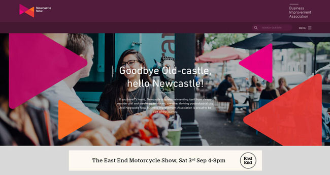 Newcastle Now 這個(gè)網(wǎng)站就使用了很多這樣的技巧。這個(gè)網(wǎng)站試圖通過(guò)設(shè)計(jì)重塑自身,設(shè)計(jì)師盡量將有趣好玩兒的元素加入其中,明亮的配色和時(shí)髦的圖形都是網(wǎng)站令人難以忘懷的部分。頁(yè)面中充滿笑臉的圖片能夠傳遞出快樂(lè)的情緒,讓用戶的參與感更強(qiáng)。