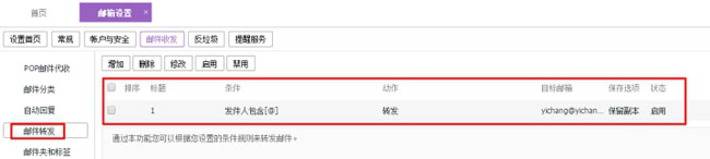 登錄郵箱之后,【郵箱設(shè)置】【郵件轉(zhuǎn)發(fā)】可以查看轉(zhuǎn)發(fā)記錄,如: