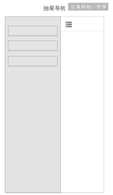 抽屜導(dǎo)航是將菜單隱藏在當(dāng)前頁面后,點擊導(dǎo)航入口即可像拉抽屜一樣拉出菜單。抽屜導(dǎo)航一般用來放置對用戶而言不太常用或者對于產(chǎn)品而言不太核心的功能,優(yōu)點是可以節(jié)省頁面空間,比較適合于不那么需要頻繁切換內(nèi)容的應(yīng)用,例如對設(shè)置、關(guān)于、個人信息等內(nèi)容的隱藏。