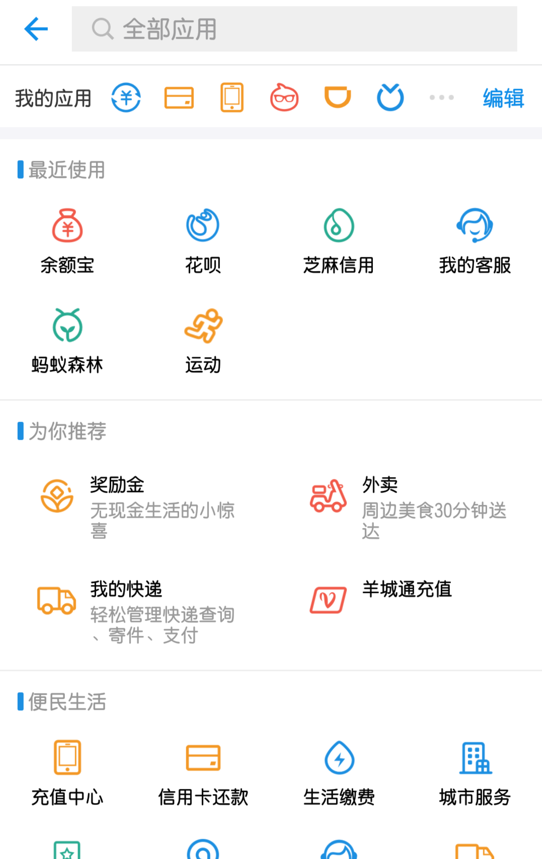 主要入口全部聚合在頁面,讓用戶做出選擇。這樣的組織方式雖然無法讓用戶第一時間看到內(nèi)容或執(zhí)行操作,用戶的選擇壓力也比較大。但卻能夠讓用戶整體上了解APP提供的服務(wù),從而選擇自己所需要的那個服務(wù)。這種導(dǎo)航于一些提供的服務(wù)較多或者類目較多的APP,例如支付寶、優(yōu)酷等。