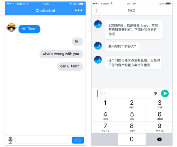 最近在做智投App的機(jī)器人Neo的原型設(shè)計(jì),是一個(gè)chatbot聊天機(jī)器人,整理了一下關(guān)于聊天機(jī)器人設(shè)計(jì)的一些心得。