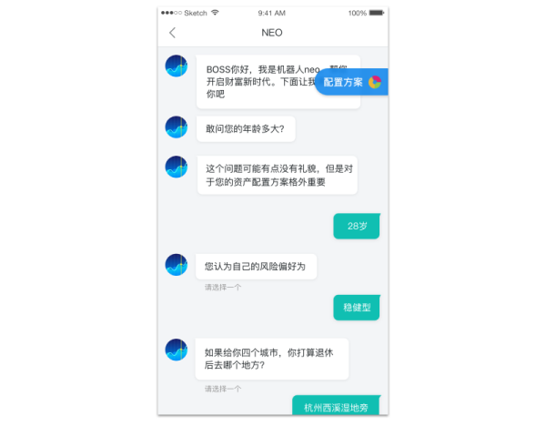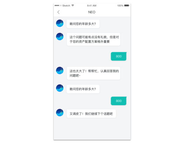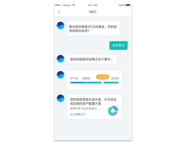 Neo需要通過(guò)對(duì)話了解用戶的信息,從基本信息收集到投資偏好了解到投資目的的挖掘,超過(guò)10道題。