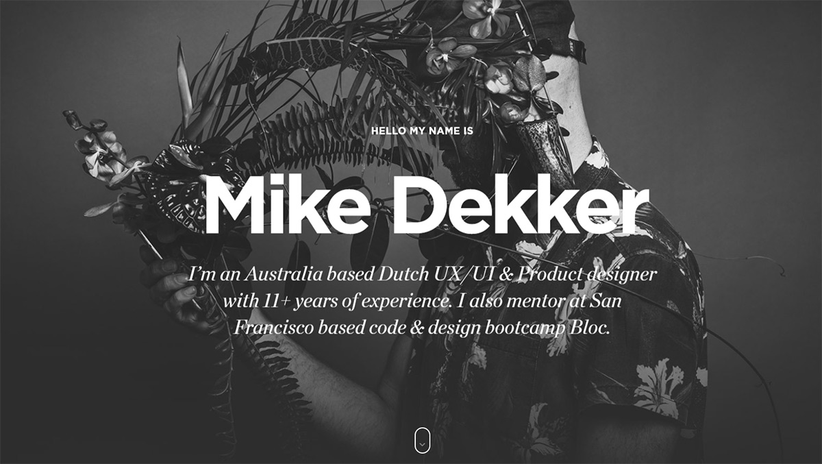 在首頁剛剛加載出來的時候開始,你就會因為這些內容而很快了解 Mike,決定是否要深入了解他的作品。當然,想要達到這樣的效果,設計師本身是需要比較扎實的文案功底的,好的文案會讓內容和信息的呈現自然而順暢。