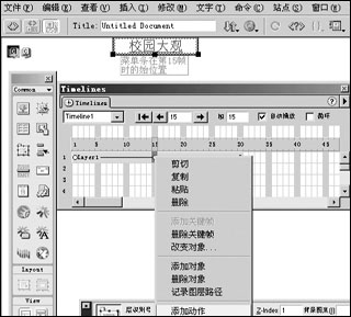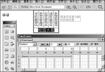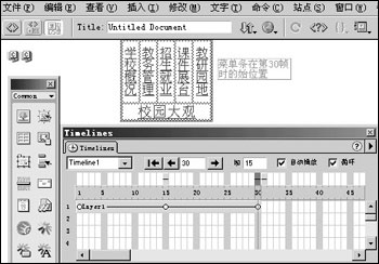 1、選定層面,當(dāng)鼠標(biāo)變成十字形時(shí)按住左鍵將層面拖動(dòng)到頁(yè)面右上角(使整個(gè)菜單條完全露出但上邊緣正好靠攏頁(yè)面上邊界),在窗口菜單中打開時(shí)間線面板,選定層面將其拖動(dòng)到時(shí)間線上,Dreamweaer會(huì)自動(dòng)產(chǎn)生一個(gè)長(zhǎng)度為15幀的動(dòng)畫對(duì)象,拖動(dòng)該動(dòng)畫對(duì)象的最后一個(gè)關(guān)鍵幀到第30幀,將其長(zhǎng)度設(shè)置為30幀。然后在第15幀處單擊右鍵,在彈出的快捷菜單中選擇添加關(guān)鍵幀選項(xiàng)插入一個(gè)關(guān)鍵幀,并將層面拖動(dòng)到適當(dāng)位置(如圖2)。在時(shí)間線窗口中的第15幀處再次單擊右鍵,在彈出的快捷菜單中選擇添加動(dòng)作,為該幀添加一個(gè)交互行為,Dreamweaer將自動(dòng)打開行為面板。單擊行為面板中的+按鈕,從彈出的菜單中選擇Timeline/Stop Timeline,打開Stop Timeline對(duì)話框,選擇Timeline1后單擊確定按鈕關(guān)閉該對(duì)話框。交互行為的事件為onFrame15,動(dòng)作為Stop Timeline,這樣當(dāng)時(shí)間線運(yùn)行到第15幀時(shí),動(dòng)畫將停止播放,這樣就實(shí)現(xiàn)了菜單條彈回的功能。