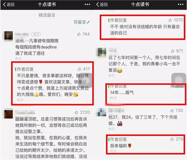 和有書一樣,十點(diǎn)讀書也特別注重和粉絲互動,每篇推文都會放出 100 條留言,作者會與留言者進(jìn)行溝通與互動,這個(gè)過程看似簡單留言,實(shí)則為公眾號粉絲維護(hù)、增加用戶好感的手段。
