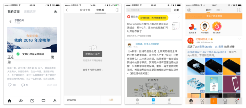 Toast是安卓系統(tǒng)的一個(gè)控件名詞,現(xiàn)在也應(yīng)用于iOS系統(tǒng)中。Toast屬于一種輕量級(jí)的反饋,常常以小彈框的形式出現(xiàn),一般出現(xiàn)1到2秒會(huì)自動(dòng)消失,可以出現(xiàn)在屏幕上中下任意位置,但同個(gè)產(chǎn)品會(huì)模塊盡量使用同一位置,讓用戶產(chǎn)生統(tǒng)一認(rèn)知。Toast信息給予用戶及時(shí)反饋,確保用戶知曉自己所處的狀態(tài),并做出相應(yīng)的措施。