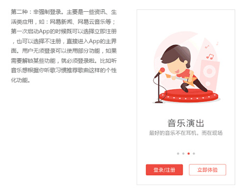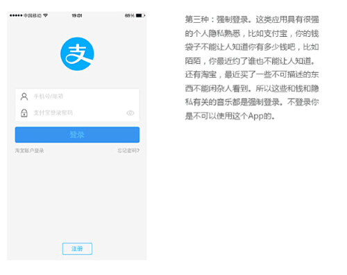 首先給app分一下類別,為什么瑤瑤登錄注冊(cè)?因?yàn)閍pp需要你的個(gè)人信息,這樣才是一個(gè)留存下來(lái)的用戶,而不是來(lái)一下的過(guò)客。app按注冊(cè)登錄必要性分類如下三種: