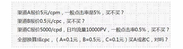 在上面這個(gè)例子中,流量運(yùn)營(yíng)的同學(xué)都會(huì)比較熟悉,不同的三個(gè)渠道有三種不同的報(bào)價(jià)方式。A跟C價(jià)格都還可以,那是不是就直接買A和C就可以?不一定,因?yàn)锳跟C它每一個(gè)點(diǎn)擊,它所換來(lái)的一個(gè)轉(zhuǎn)化效果,其實(shí)可能是不一樣的。比如說(shuō)C可能每5個(gè)點(diǎn)擊,有一個(gè)用戶的進(jìn)行轉(zhuǎn)化。那么他給你帶來(lái)的這個(gè)收入是一個(gè)固定的值。如果A有另外一個(gè)數(shù)據(jù)的話,它帶來(lái)的收入值,可能又是不一樣的。所以你只有監(jiān)測(cè)到它的轉(zhuǎn)化和渠道的來(lái)源,才能做出最精確的判斷。