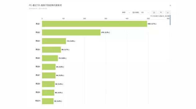 我們把這個(gè)搜索詞的出現(xiàn)的頻次進(jìn)行一個(gè)統(tǒng)計(jì)并做成條形圖。我們就能知道這個(gè)用戶,他跑到網(wǎng)站或者APP軟件開(kāi)發(fā)想找卻沒(méi)有找到的比較多的內(nèi)容是什么。