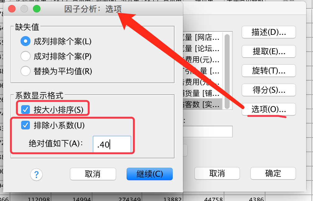 注意:系數(shù)是按我們設(shè)置的降序排列,并且有的為空,是因為我們設(shè)置的排除小于0.4的系數(shù)是因子結(jié)果更加清晰,可讀。