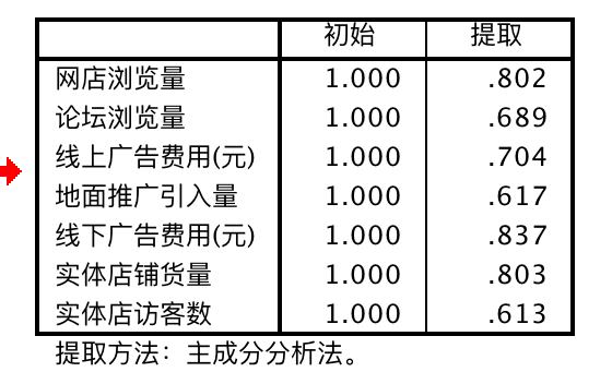 這個結(jié)果是“變量共同度”,顯示了原始變量能被提取的因子解釋的程度。