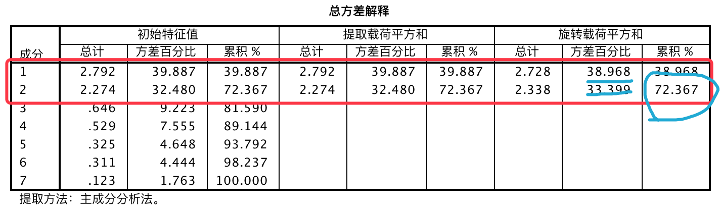 本例中旋轉(zhuǎn)后的方差解釋圖知: