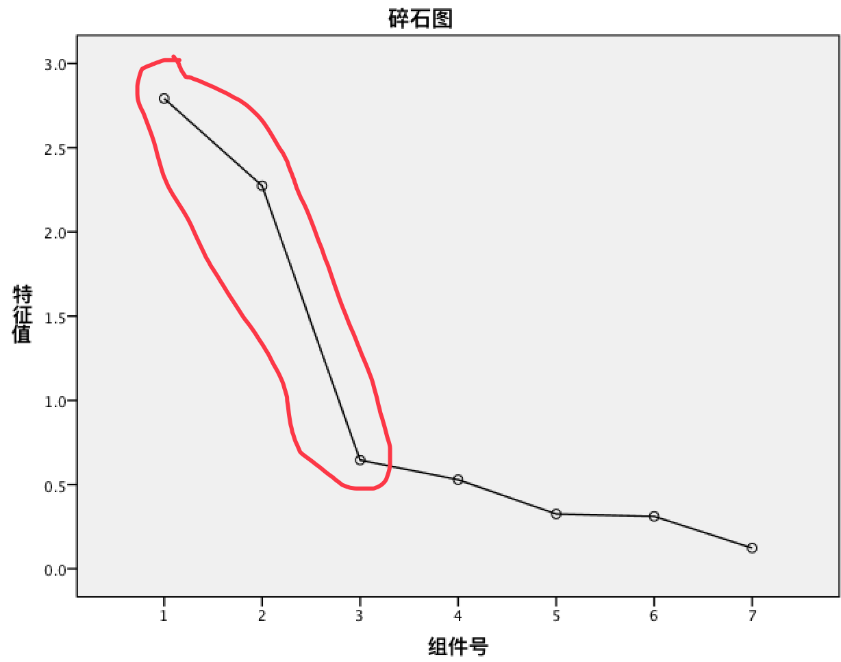 碎石圖”能輔助我們判斷好因子個數(shù),通常是選區(qū)取現(xiàn)中比較陡峭的位置所對應(yīng)的因子個數(shù)。