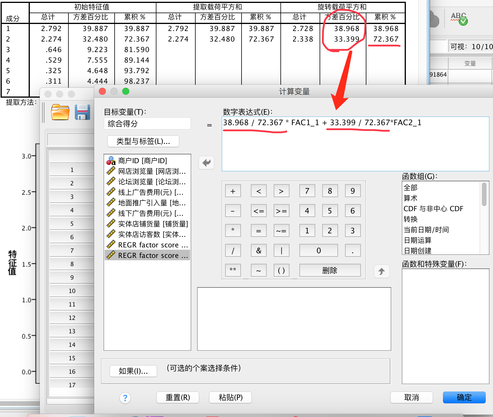 公式:第一個因子占的加權(quán)比重數(shù)*第一個因子得分+第二個因子占的加權(quán)比重數(shù)*第二個因子得分