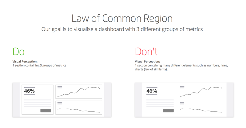 Stephen Palmer和Irvin Rock在1999年提出「連續(xù)性法則」,即如果元素共享具有明確界限的區(qū)域,則它們傾向于分成一個(gè)組。在設(shè)計(jì)中我們經(jīng)常使用卡片式來(lái)對(duì)相關(guān)元素組合起來(lái)。