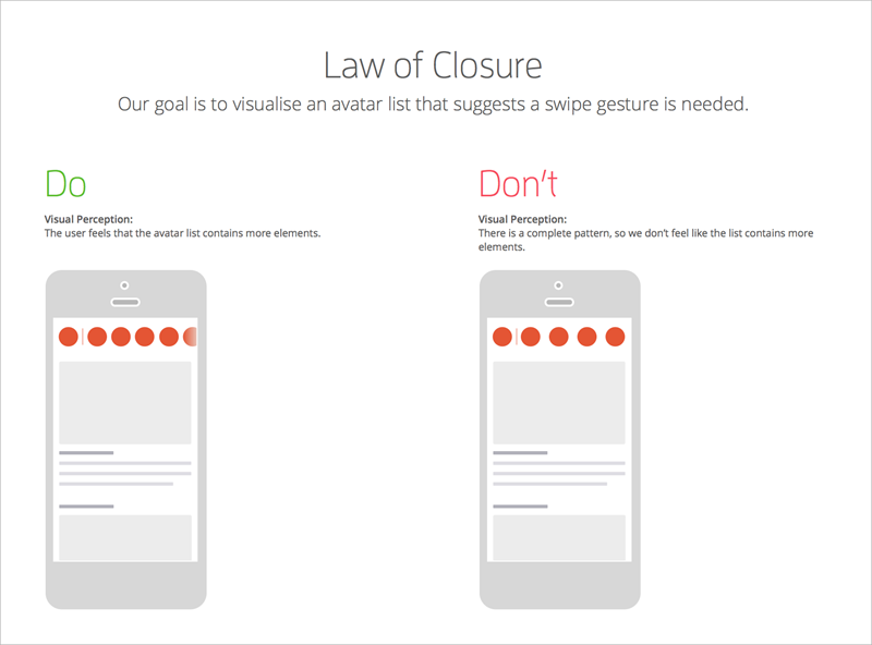 “封閉性法則”意為當(dāng)我們?cè)O(shè)計(jì)一個(gè)缺失或者斷開(kāi)部分的復(fù)雜頁(yè)面時(shí),會(huì)尋找一個(gè)連續(xù)、平滑的樣式。換句話,我們有意識(shí)的去填補(bǔ)空白。