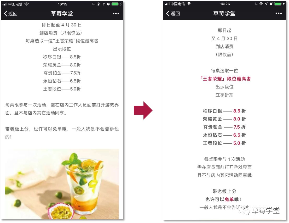 比如把需要強調(diào)的部分加粗、調(diào)大、改顏色、增加背景色、加刪除線、下劃線、傾斜、加。一。些。符。號、或是做一些藝術(shù)化處理,等等方式,都可以使需要強調(diào)的部分迅速從大量內(nèi)容中跳脫出來。
