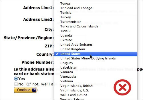 用戶不喜歡填寫表單是一件眾所周知的事情。填寫表單的流程越長(zhǎng)越復(fù)雜,用戶填完的可能性就越小,尤其是在容易造成誤操作的小屏幕手機(jī)上。下拉菜單會(huì)使這個(gè)過程更加糟糕。選擇菜單和選項(xiàng)數(shù)量你會(huì)發(fā)現(xiàn)選擇菜單的選項(xiàng)有時(shí)候只有2個(gè),有時(shí)候超過20個(gè)。這兩種情況下使用選擇菜單都是不正確的。選項(xiàng)太多當(dāng)選擇菜單的選項(xiàng)超過15個(gè)時(shí)就很難瀏覽和導(dǎo)航了。太長(zhǎng)的下拉列表對(duì)于用戶來說就是噩夢(mèng),因?yàn)槠聊徽故静涣怂械倪x項(xiàng),他們需要在表單上進(jìn)行滑動(dòng)查看。這將使用戶體驗(yàn)大打折扣,減緩了整個(gè)進(jìn)程。典型的例子就是下拉選擇國(guó)家,選項(xiàng)超過100個(gè)。用戶不可能很好的瀏覽全部選項(xiàng),也沒有快捷簡(jiǎn)便的方法找到用戶想要的選項(xiàng)。我每次選擇“United States”都很抓狂:“United States”因?yàn)槭怯脩舫_x項(xiàng),所以應(yīng)該放在前面。但是如果是按照首字母順序排列時(shí),”Afghanistan”在最上面,“United States”會(huì)在很下面,僅次于” United Arab Emirates”。所以通常我做的第一件事就是弄清楚選項(xiàng)是怎么排序的。