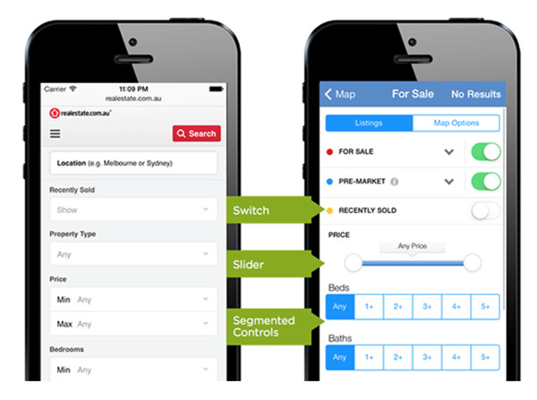 手機(jī)幾乎一半的空間被選擇菜單里的7個(gè)選項(xiàng)占據(jù)了總結(jié)以下控件可以用來代替下拉菜單:?jiǎn)芜x按鈕,或是分組控件,是一組相互關(guān)聯(lián)但互斥的選項(xiàng)(比如選擇區(qū)域)