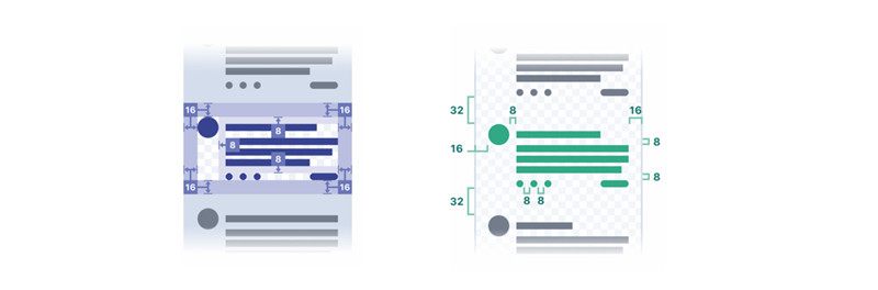 布局中,柵格和間距冥實是息息相關(guān)的。可以這么理解兩者的關(guān)系,柵格定義的是布局中大棋塊的邏輯性定位和排布,那間距定義的是版面中所有細節(jié)的間距、步進、適配 #以8pt柵格舉例,柵格中定義了安全距離、列寬、水檣等基本詞的值 # 都是以8為基本單位然后進行步進,那么在間距中,元素與元素之間的距離就可以定義成8的倍數(shù),所有元素之間的間距都是8的倍數(shù)。就可以讓轚個界面的設(shè)計*有節(jié)奏,在定義元素尺寸的時候有非常強的邏輯性支捋,在一致性上也會很好的達到。