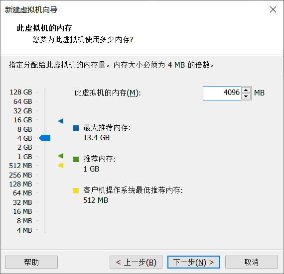 7、這里設(shè)置“虛擬機(jī)內(nèi)存”為“4 GB”,一般選擇“2 GB”即可,下一步: