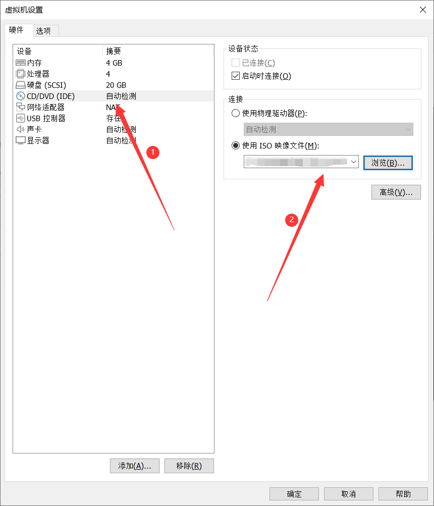 11、選擇“CD/DVD(IDE)”,指定“ISO鏡像文件”,確定: