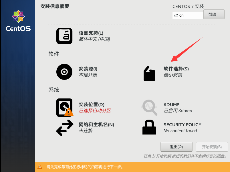 4、點擊“軟件選擇”,選擇“GNOME桌面”,完成:
