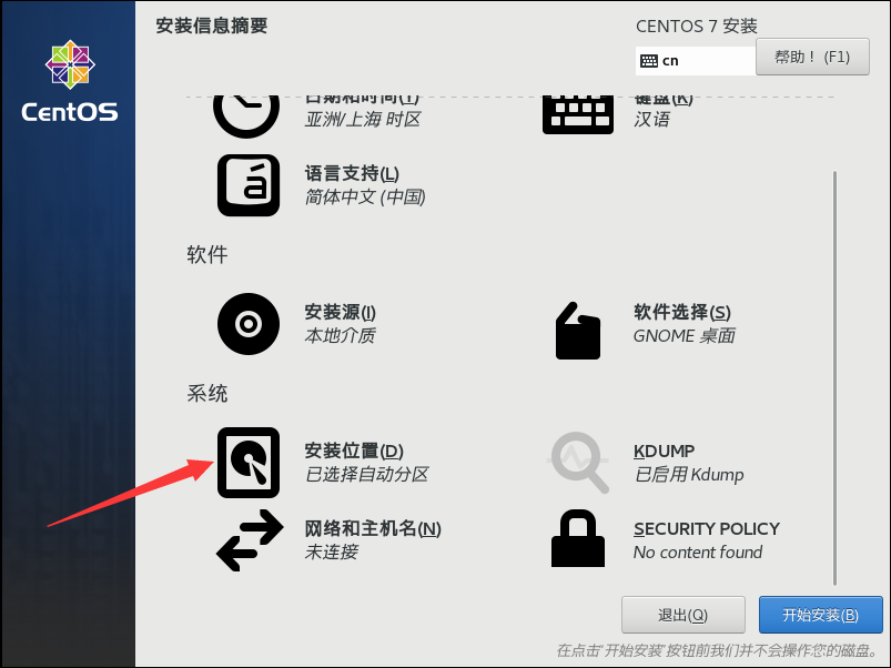 5、點擊“安裝位置”,選擇“自動配置分區(qū)”,完成: