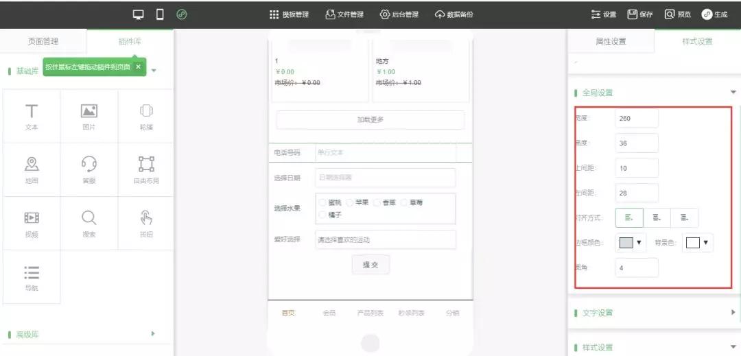 在小程序編輯器中,點擊表單插件,選擇需要的表單組件并選中需要修改的組件,點擊樣式設置