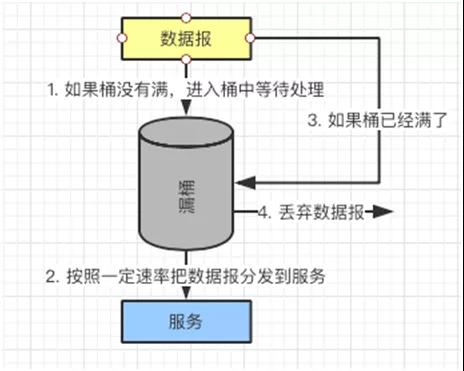 數(shù)據(jù)報可以按照任意的速度流入桶中,如果數(shù)據(jù)報的容量超過了桶的容量,再流入的數(shù)據(jù)報將會被丟棄。