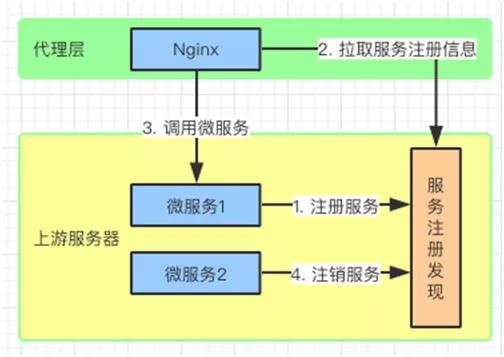 微服務(wù)首先會注冊到“服務(wù)注冊發(fā)現(xiàn)”中心(Consul,Eureka)。注冊中心包含微服務(wù)的信息,Nginx 會定期從這里拉取服務(wù)信息(Lua)。