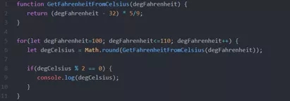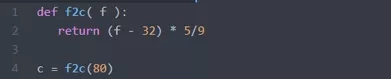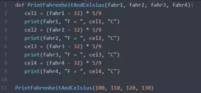 上述代碼輸出華氏度數(shù)值和相應(yīng)的攝氏度數(shù)值。很明顯,上述代碼存在重復(fù)性代碼段,這種情況下創(chuàng)建一個(gè)函數(shù)就可以更快速地完成上述功能: