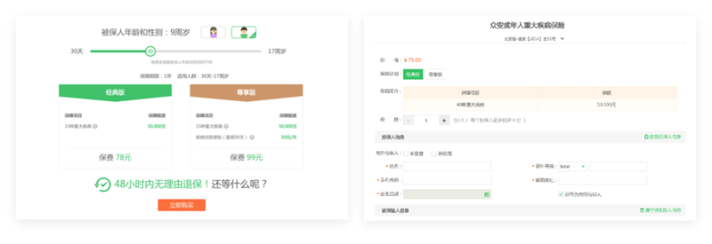 當(dāng)用戶點(diǎn)擊“立即投保”進(jìn)入投保流程時,還需要面對一些填寫相關(guān)信息的表單,這是規(guī)范專業(yè)的保險(xiǎn)公司都會具備的,但互聯(lián)網(wǎng)保險(xiǎn)真的需要這么多表單嘛?!