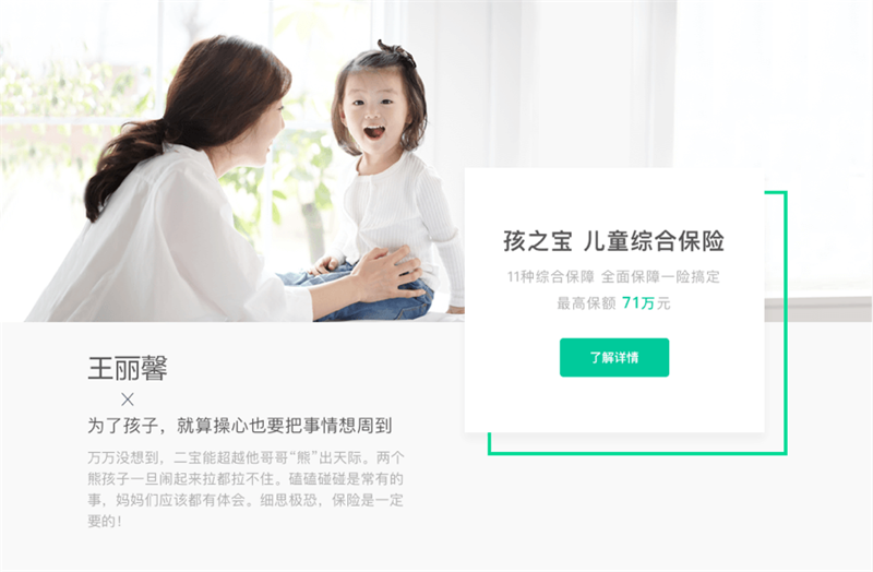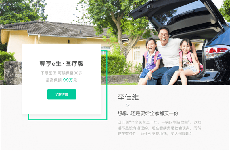 對于專題中的保險(xiǎn)產(chǎn)品,我們嘗試通過更情感化的表達(dá)來讓用戶感知它們。無論是角色還是場景,通過他們說出了用戶的顧慮與考量。無論是人名、還是文案,我們都花費(fèi)大量的精力進(jìn)行構(gòu)思,力求令用戶獲得代入感,更容易產(chǎn)生共鳴。