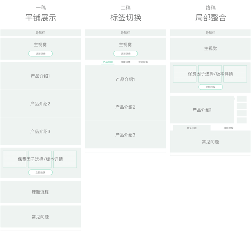 隨著產(chǎn)品類型的豐富,不同類型的保險(xiǎn)在瀏覽、購買過程中會差異化地產(chǎn)生許多新的信息展示和交互方式,我們需要對現(xiàn)有的購買體驗(yàn)進(jìn)行迭代,力求體驗(yàn)統(tǒng)一性的同時,保證業(yè)務(wù)的差異化實(shí)現(xiàn)。我們也在移動端的商詳頁及投保流程的設(shè)計(jì)中積累了更多經(jīng)驗(yàn),是時候?qū)⑺鼈冊赑C網(wǎng)站端付諸實(shí)踐了。