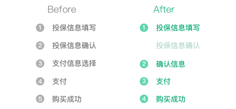 梳理過后,我們發(fā)現(xiàn)核心流程其實(shí)并不復(fù)雜。經(jīng)過適當(dāng)?shù)膭h減、合并、以及視覺優(yōu)化,投保流程其實(shí)可以“輕”很多。