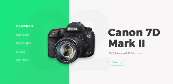 下圖:相機圖片在兩個模塊的中間,從綠色背景模塊延伸到淺灰色模塊,將模塊中間死板的分割線去除,好的過渡方案。