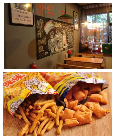 營銷者們當(dāng)然不會錯失良機。利用人們對過往的美好回憶,于是你看到了遍地開花的“校園時代”主題餐廳、“8090后”記憶餐館、“那些年”咖啡廳等等,甚至還出現(xiàn)了這樣一種零食店:專門出售小時候的零食——果丹皮、麥麗素、辣條、金幣巧克力,應(yīng)有盡有。