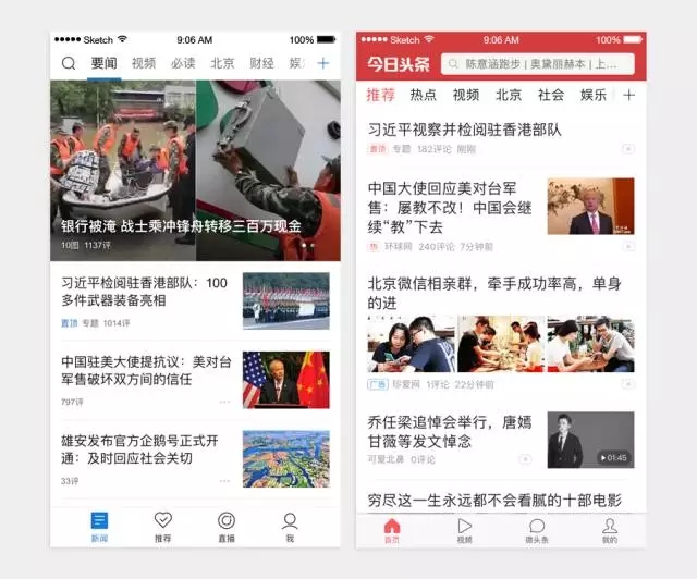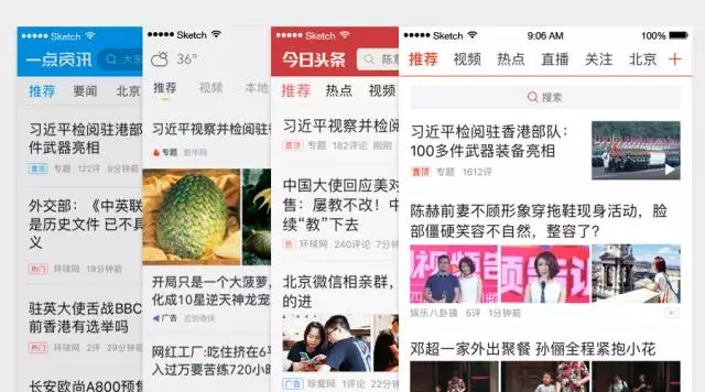 除了左文右圖的展現(xiàn)方式相同,資訊 app 在信息架構(gòu)、信息的組織方式上,也采用了相似的設(shè)計(jì)。